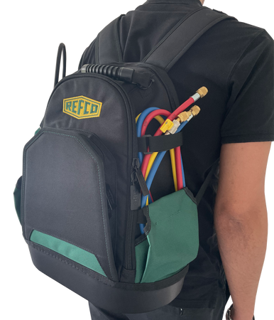 Plecak narzędziowy – skrzynka narzędziowa klimatyzacji Refco REFPACK to praktyczne rozwiązanie stworzone z myślą o serwisantach instalacji chłodniczych i klimatyzacyjnych. Ergonomiczna konstrukcja plecaka pozwala na wygodne przenoszenie niezbędnych narzędzi, a solidne materiały gwarantują trwałość i odporność na intensywne użytkowanie. Dzięki licznym przegrodom i kieszeniom organizacja pracy staje się prostsza, a dostęp do akcesoriów szybki i wygodny.