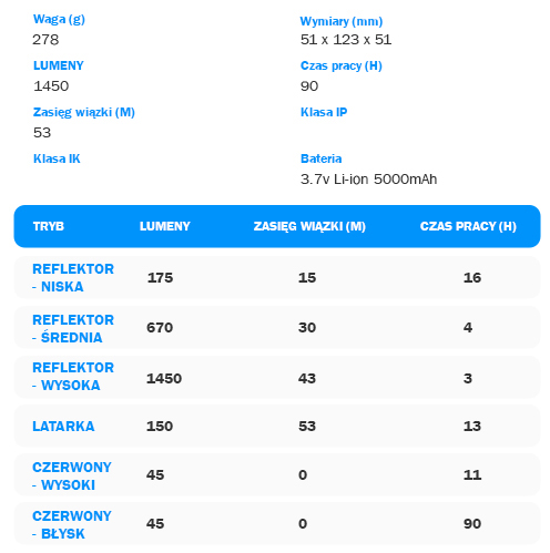 - *Przenośna kompaktowa lampa robocza wyposażona w diodę COB LED o mocy 1450 lumenów