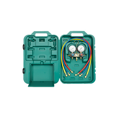 Kompleksowe narzędzie pomiarowe, stworzone z myślą o precyzyjnym monitorowaniu i kontrolowaniu ciśnienia w różnych rodzajach instalacji, w tym w systemach chłodzenia, klimatyzacji oraz innych procesach przemysłowych. Jest to wszechstronny zestaw, który można wykorzystać w wielu różnych zastosowaniach.